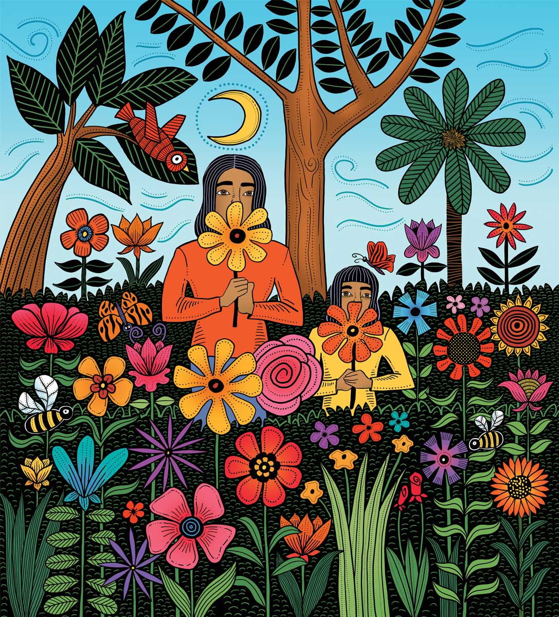 In recent years, Sue has taken up writing for children. She has several works-in-progress and has developed a new technique for the graphic novels she is writing and illustrating. This digital ink approach maintains Sue’s bright color palette and whimsical style, but with a fine line and more detail. Sue draws on the iPad in Procreate and adds color in Photoshop. Sue has recently completed her first picture book in this new style, BLUE BOAT HOME, launching in April 2025 by Skinner House Books.